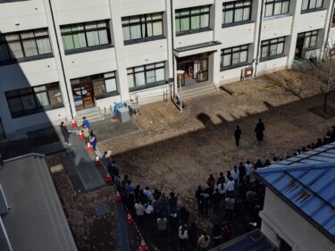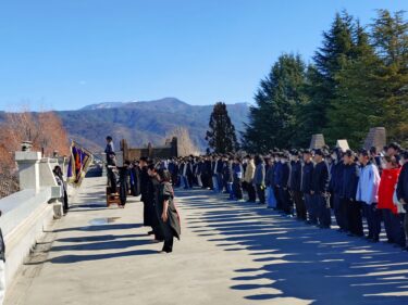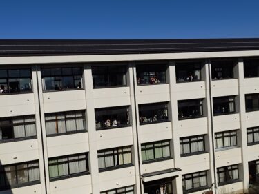 本日の昼休み、雲一つない快晴のもと、3年生の皆さんの未来を照らすかのような日差しが降り注ぐ中で、1・2年生による共通テスト壮行会が行われ、中庭と1棟の屋上から、2棟の3階、4階の教室にいる3年生に向けてエールが送られました。共通テスト壮行会ですが、本格化する受験に向けての激励でもあると思います。1・2年生の想いを受け止め、最後まで、粘り強く挑戦してほしい。